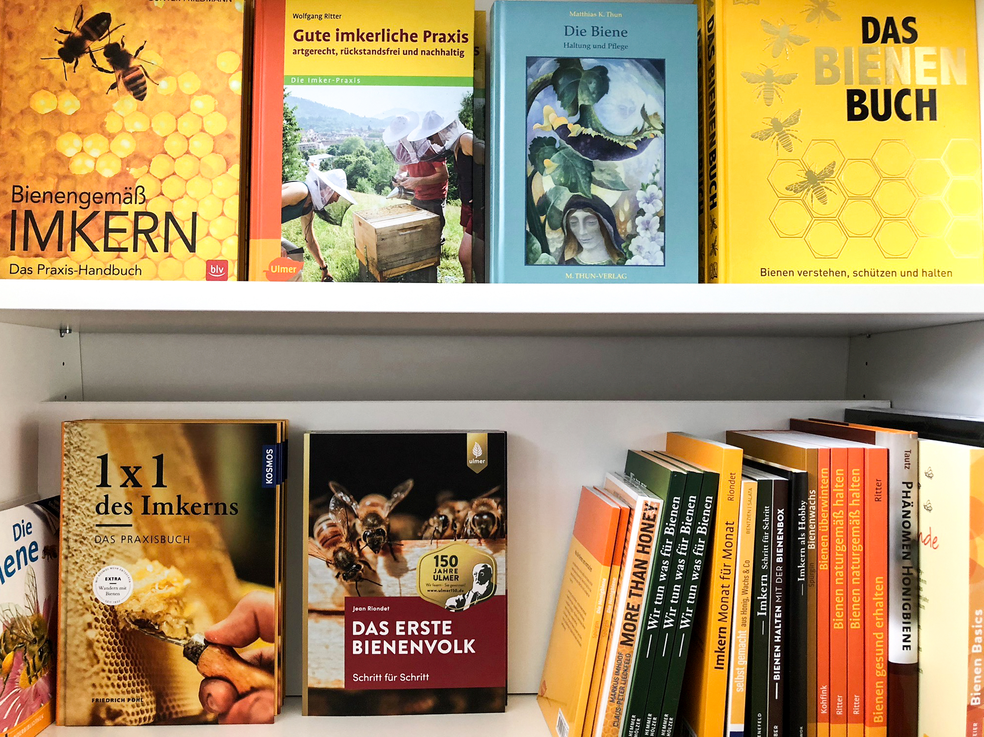 Die Literatur umfasst den Einstieg in die Imkerei, Fachliteratur für Fortgeschrittene, Sachbücher über Bienen und ihr Verhalten, sowie über den richtigen Bienengarten.